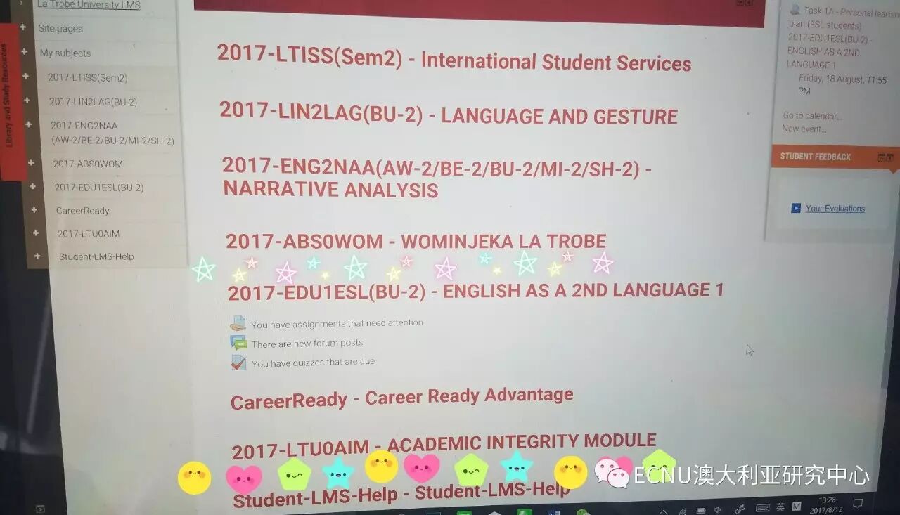 上图就是主界面啦,除了普通课程以外,还有两门特别的课,是专门为新生准备的,一门是澳洲历史文化了解,另一门是学习指南课程。尤其要提的是后一门,非常有意思的是它的进行方式是类似角色扮演的情景剧选择游戏,这种特别的形式能让你了解一些有关学习的注意事项,让人在获得“干货”的同时不会觉得枯燥。